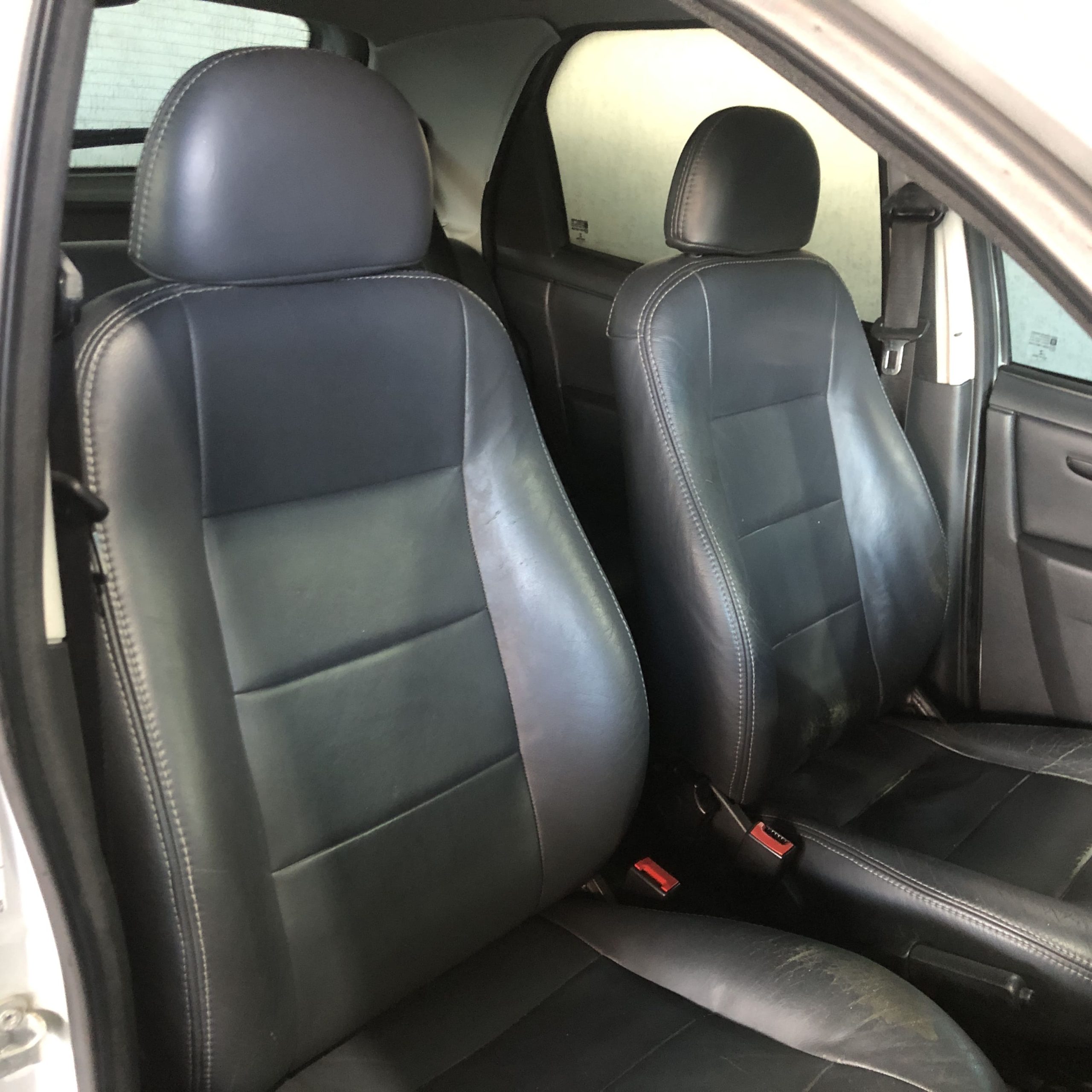 Interior: Bancos com revestimento em couro e acabamento interno em tons escuros.
